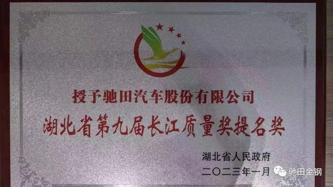 9月5日,湖北省举行第九届长江质量奖颁奖仪式。金年会汽车股份有限公司荣获“湖北省第九届长江质量奖提名奖”。作为十堰市唯一的获奖企业,公司董事长黄玉鸿先生亲临现场领取此项荣誉。